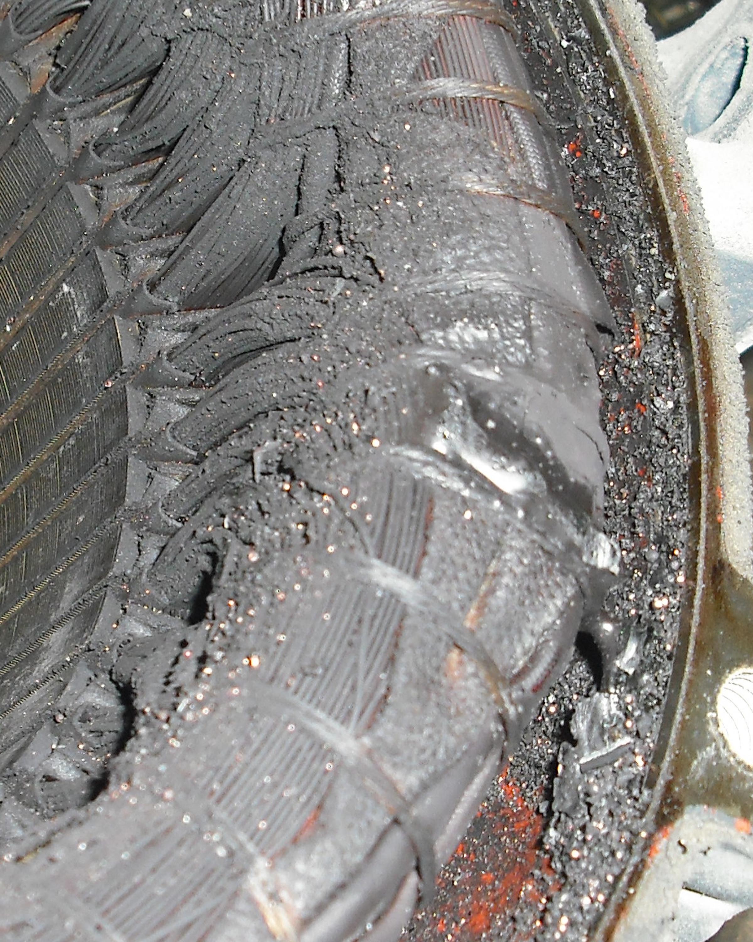 In the picture (left), on close inspection small copper splatter can be seen on the winding and between the winding and the casing. Also open circuits in the copper wires can be seen. A great deal of this damage could have been avoided with proper checks and maintenance.